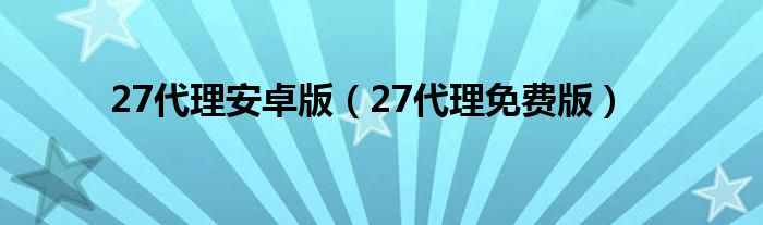 大家好,小问来为大家解答以上问题。27代理安卓版,27代理免费版这个很多人还不知道,现在让我们一起来看看吧!