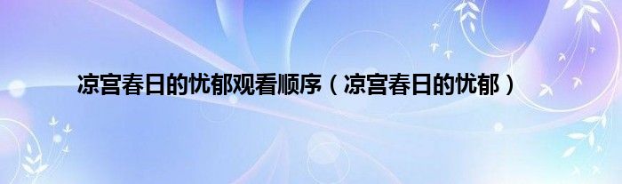 大家好,小问来为大家解答以上问题。凉宫春日的忧郁观看顺序,凉宫春日的忧郁这个很多人还不知道,现在让我们一起来看看吧!