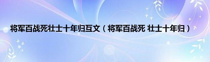 以上就是【将军百战死壮士十年归互文,将军百战死 壮士十年归】相关内容。