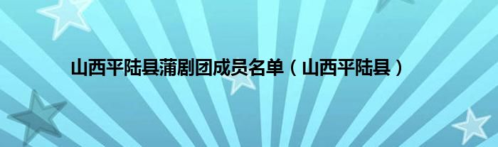 以上就是【山西平陆县蒲剧团成员名单,山西平陆县】相关内容。