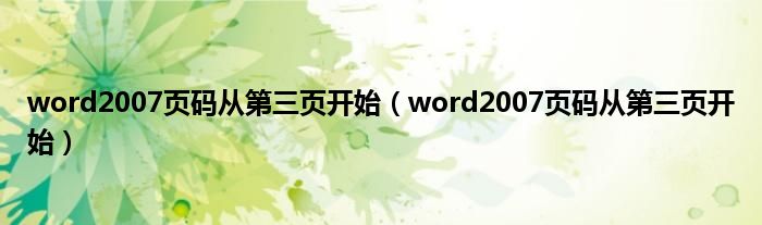 大家好,小问来为大家解答以上问题。word2007页码从第三页开始,word2007页码从第三页开始这个很多人还不知道,现在让我们一起来看看吧!