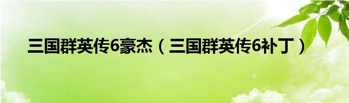 大家好,小问来为大家解答以上问题。三国群英传6豪杰,三国群英传6补丁这个很多人还不知道,现在让我们一起来看看吧!