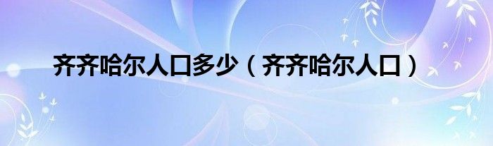 以上就是【齐齐哈尔人口多少,齐齐哈尔人口】相关内容。