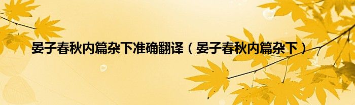 大家好,小问来为大家解答以上问题。晏子春秋内篇杂下准确翻译,晏子春秋内篇杂下这个很多人还不知道,现在让我们一起来看看吧!