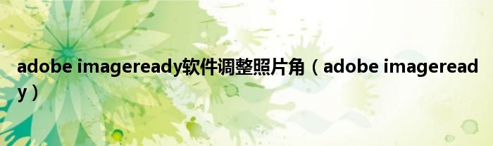 以上就是【adobe imageready软件调整照片角,adobe imageready】相关内容。