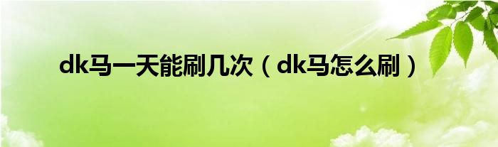 以上就是【dk马一天能刷几次,dk马怎么刷】相关内容。