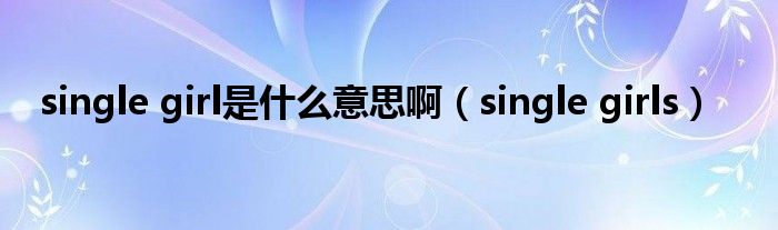 以上就是【single girl是什么意思啊,single girls】相关内容。