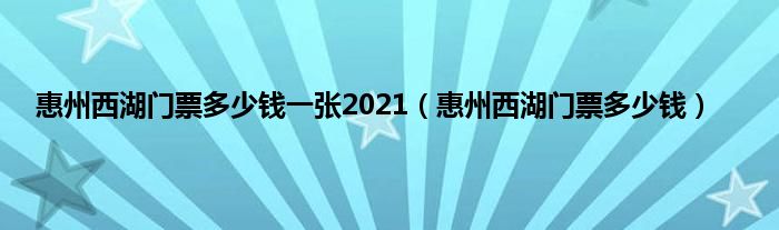 以上就是【惠州西湖门票多少钱一张2021,惠州西湖门票多少钱】相关内容。