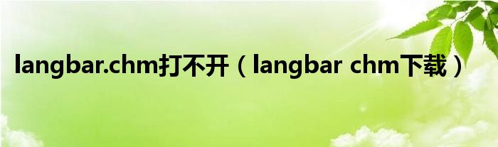 大家好,小问来为大家解答以上问题。langbar.chm打不开,langbar chm下载这个很多人还不知道,现在让我们一起来看看吧!