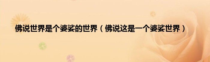 大家好,小问来为大家解答以上问题。佛说世界是个婆娑的世界,佛说这是一个婆娑世界这个很多人还不知道,现在让我们一起来看看吧!