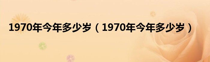 大家好,小问来为大家解答以上问题。1970年今年多少岁,1970年今年多少岁这个很多人还不知道,现在让我们一起来看看吧!