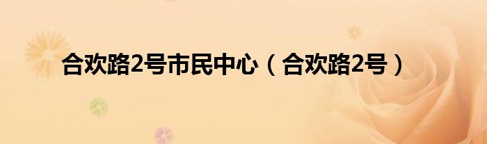 大家好,小问来为大家解答以上问题。合欢路2号市民中心,合欢路2号这个很多人还不知道,现在让我们一起来看看吧!
