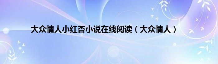 大家好,小问来为大家解答以上问题。大众情人小红杏小说在线阅读,大众情人这个很多人还不知道,现在让我们一起来看看吧!