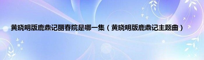 以上就是【黄晓明版鹿鼎记丽春院是哪一集,黄晓明版鹿鼎记主题曲】相关内容。