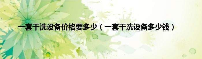大家好,小问来为大家解答以上问题。一套干洗设备价格要多少,一套干洗设备多少钱这个很多人还不知道,现在让我们一起来看看吧!