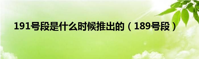 以上就是【191号段是什么时候推出的,189号段】相关内容。