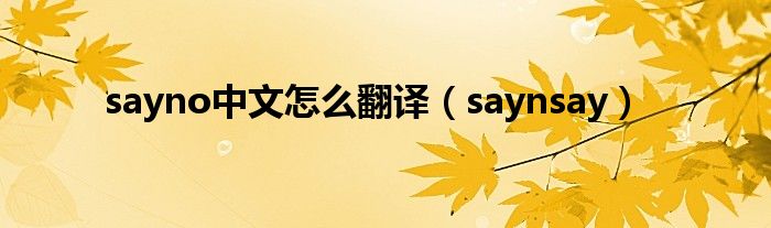 大家好,小问来为大家解答以上问题。sayno中文怎么翻译,saynsay这个很多人还不知道,现在让我们一起来看看吧!