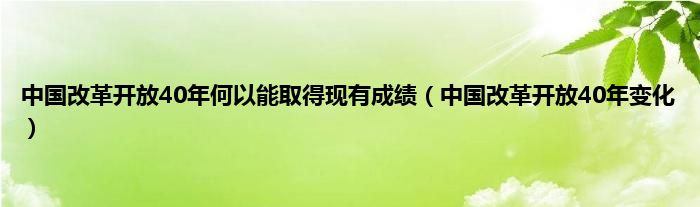 大家好,小问来为大家解答以上问题。中国改革开放40年何以能取得现有成绩,中国改革开放40年变化这个很多人还不知道,现在让我们一起来看看吧!