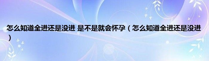 大家好,小问来为大家解答以上问题。怎么知道全进还是没进 是不是就会怀孕,怎么知道全进还是没进这个很多人还不知道,现在让我们一起来看看吧!