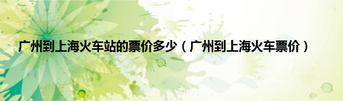 以上就是【广州到上海火车站的票价多少,广州到上海火车票价】相关内容。