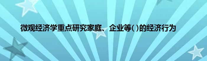 大家好,小问来为大家解答以上问题。微观经济学重点研究家庭、企业等( )的经济行为这个很多人还不知道,现在让我们一起来看看吧!