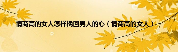 以上就是【情商高的女人怎样挽回男人的心,情商高的女人】相关内容。