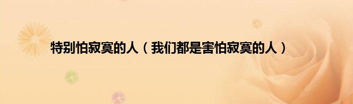 以上就是【特别怕寂寞的人,我们都是害怕寂寞的人】相关内容。