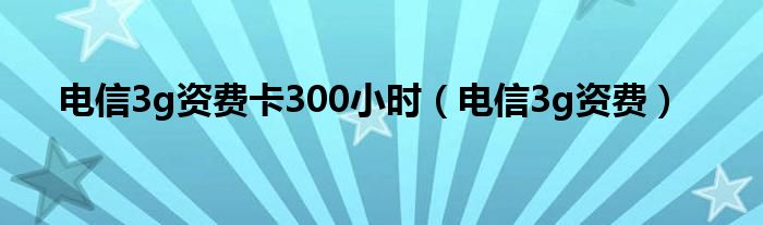 大家好,小问来为大家解答以上问题。电信3g资费卡300小时,电信3g资费这个很多人还不知道,现在让我们一起来看看吧!