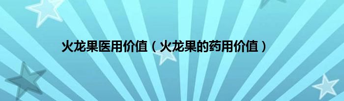 以上就是【火龙果医用价值,火龙果的药用价值】相关内容。