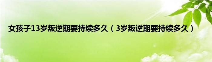 大家好,小问来为大家解答以上问题。女孩子13岁叛逆期要持续多久,3岁叛逆期要持续多久这个很多人还不知道,现在让我们一起来看看吧!
