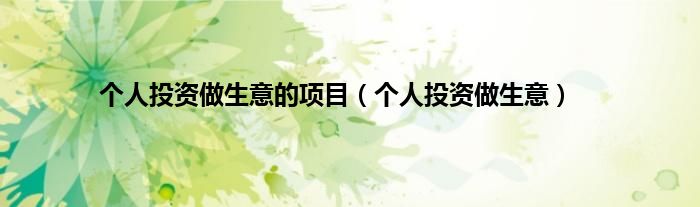 以上就是【个人投资做生意的项目,个人投资做生意】相关内容。