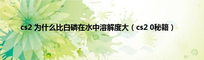 以上就是【cs2 为什么比白磷在水中溶解度大,cs2 0秘籍】相关内容。