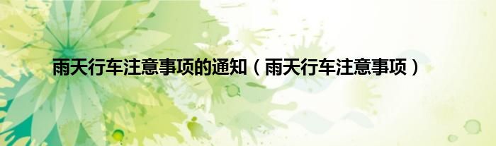大家好,小问来为大家解答以上问题。雨天行车注意事项的通知,雨天行车注意事项这个很多人还不知道,现在让我们一起来看看吧!