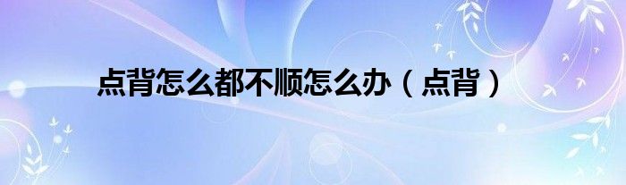 以上就是【点背怎么都不顺怎么办,点背】相关内容。