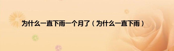大家好,小问来为大家解答以上问题。为什么一直下雨一个月了,为什么一直下雨这个很多人还不知道,现在让我们一起来看看吧!