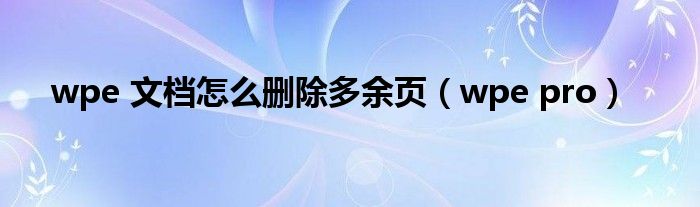 大家好,小问来为大家解答以上问题。wpe 文档怎么删除多余页,wpe pro这个很多人还不知道,现在让我们一起来看看吧!