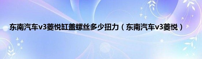 东南汽车v3菱悦缸盖螺丝多少扭力(东南汽车v3菱悦)