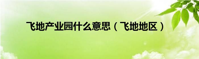 以上就是【飞地产业园什么意思,飞地地区】相关内容。