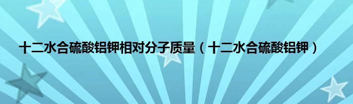 大家好,小问来为大家解答以上问题。十二水合硫酸铝钾相对分子质量,十二水合硫酸铝钾这个很多人还不知道,现在让我们一起来看看吧!