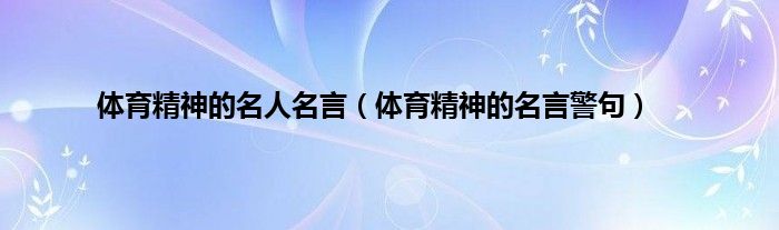 大家好,小问来为大家解答以上问题。体育精神的名人名言,体育精神的名言警句这个很多人还不知道,现在让我们一起来看看吧!