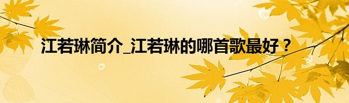 本文江若琳简介_江若琳的哪首歌最好?到此分享完毕,希望对大家有所帮助。