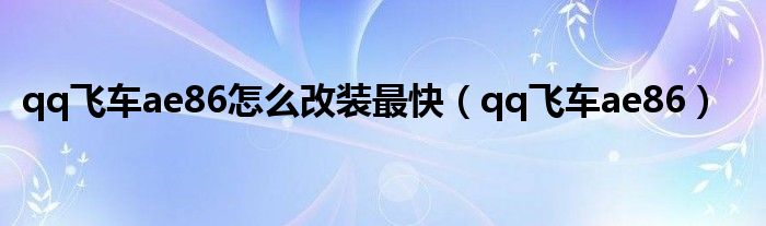 以上就是【qq飞车ae86怎么改装最快,qq飞车ae86】相关内容。
