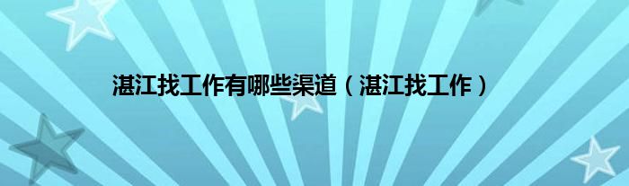 大家好,小问来为大家解答以上问题。湛江找工作有哪些渠道,湛江找工作这个很多人还不知道,现在让我们一起来看看吧!