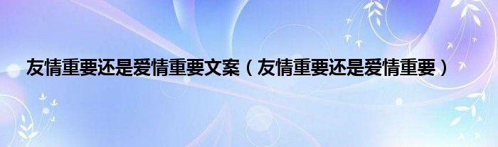 大家好,小问来为大家解答以上问题。友情重要还是爱情重要文案,友情重要还是爱情重要这个很多人还不知道,现在让我们一起来看看吧!
