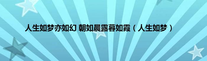 大家好,小问来为大家解答以上问题。人生如梦亦如幻 朝如晨露暮如霞,人生如梦这个很多人还不知道,现在让我们一起来看看吧!