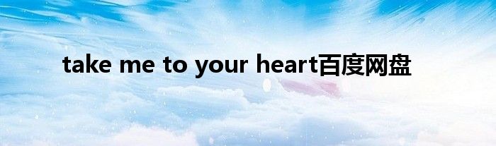 大家好,小问来为大家解答以上问题。take me to your heart百度网盘这个很多人还不知道,现在让我们一起来看看吧!