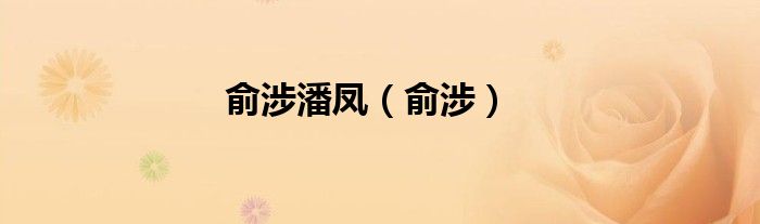 大家好,小问来为大家解答以上问题。俞涉潘凤,俞涉这个很多人还不知道,现在让我们一起来看看吧!