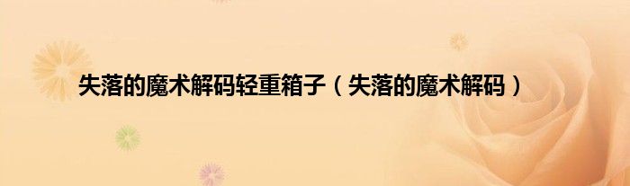 以上就是【失落的魔术解码轻重箱子,失落的魔术解码】相关内容。