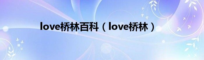大家好,小问来为大家解答以上问题。love桥林百科,love桥林这个很多人还不知道,现在让我们一起来看看吧!