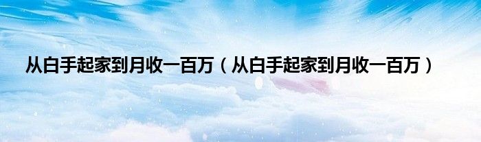 大家好,小问来为大家解答以上问题。从白手起家到月收一百万,从白手起家到月收一百万这个很多人还不知道,现在让我们一起来看看吧!